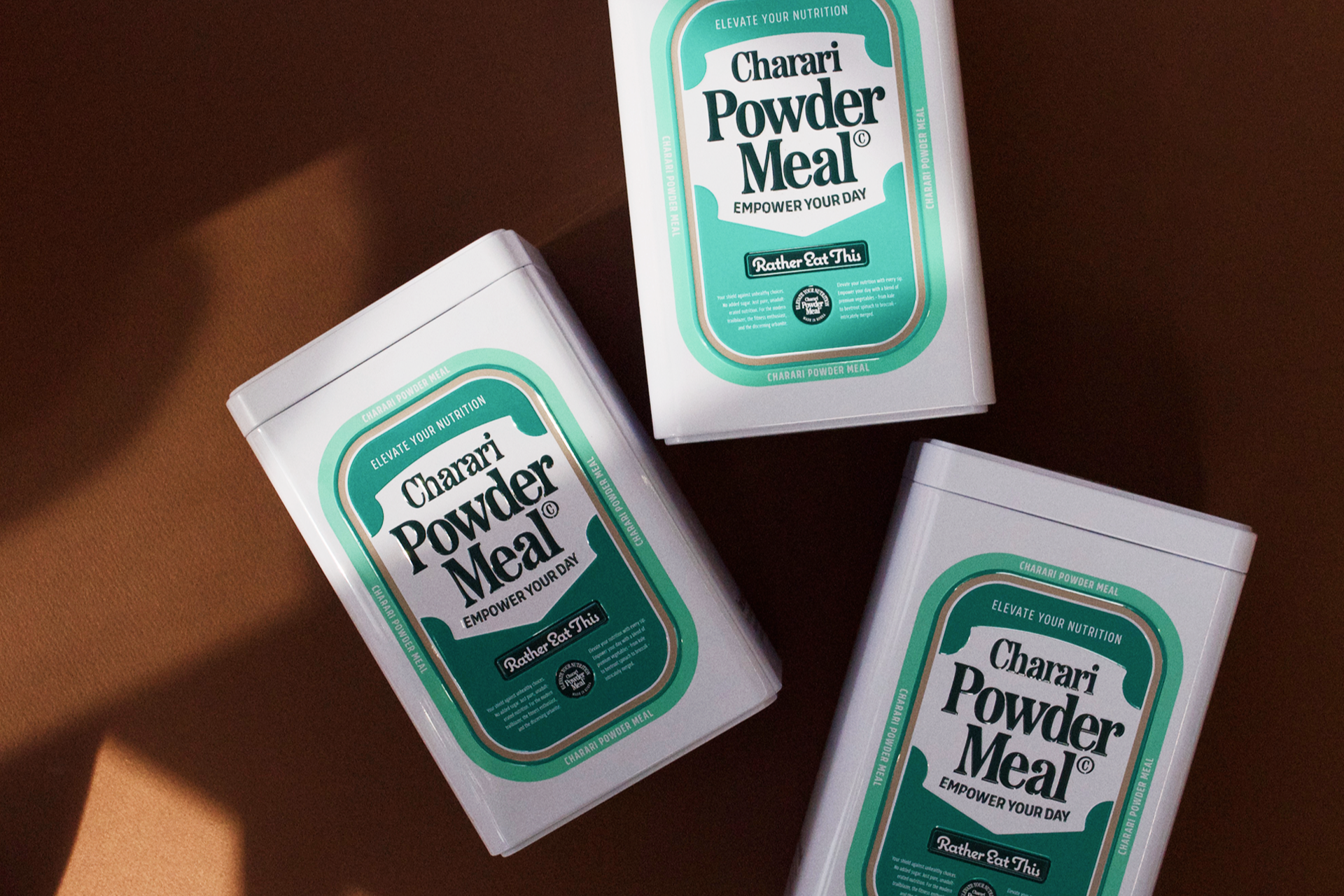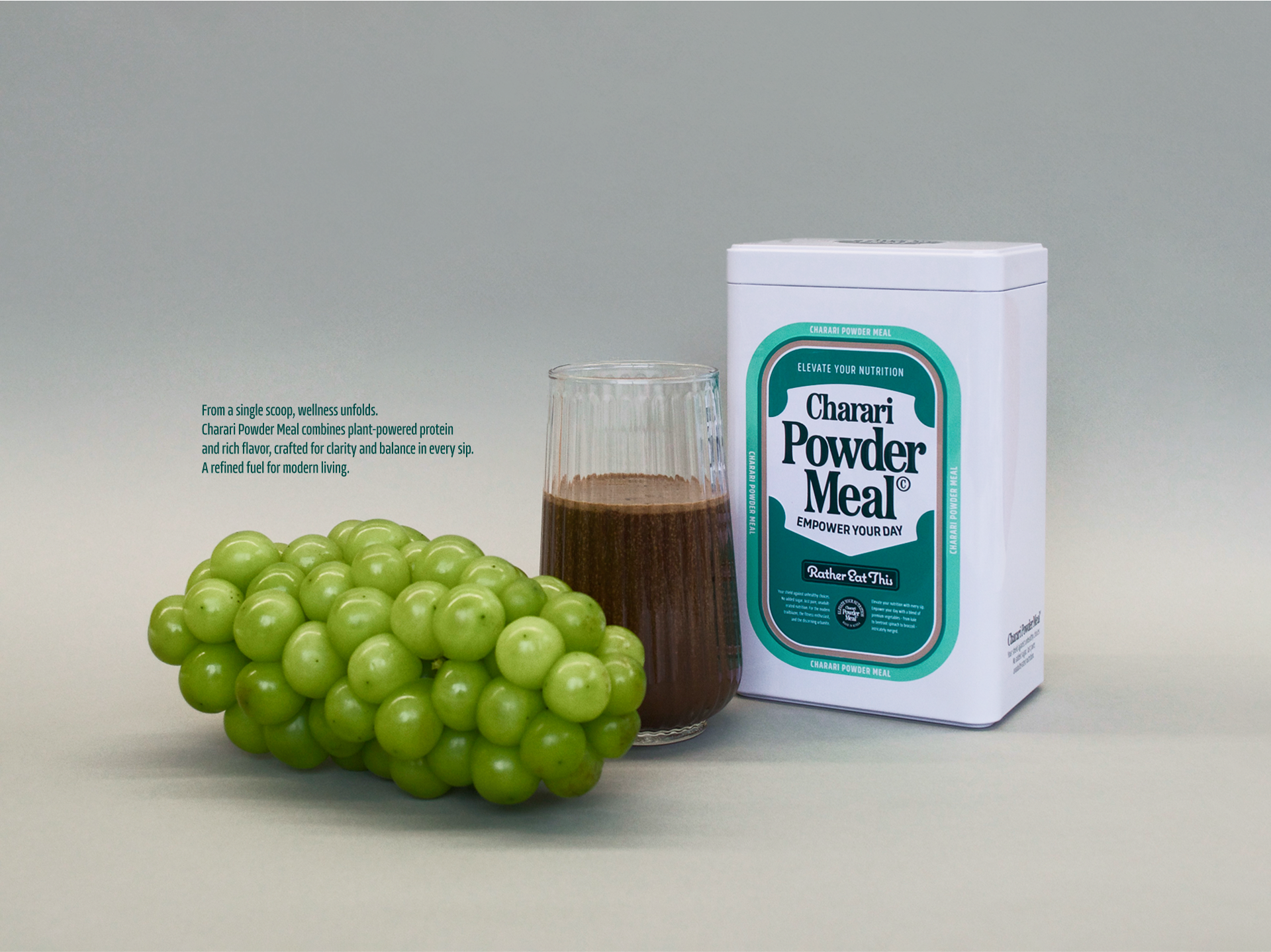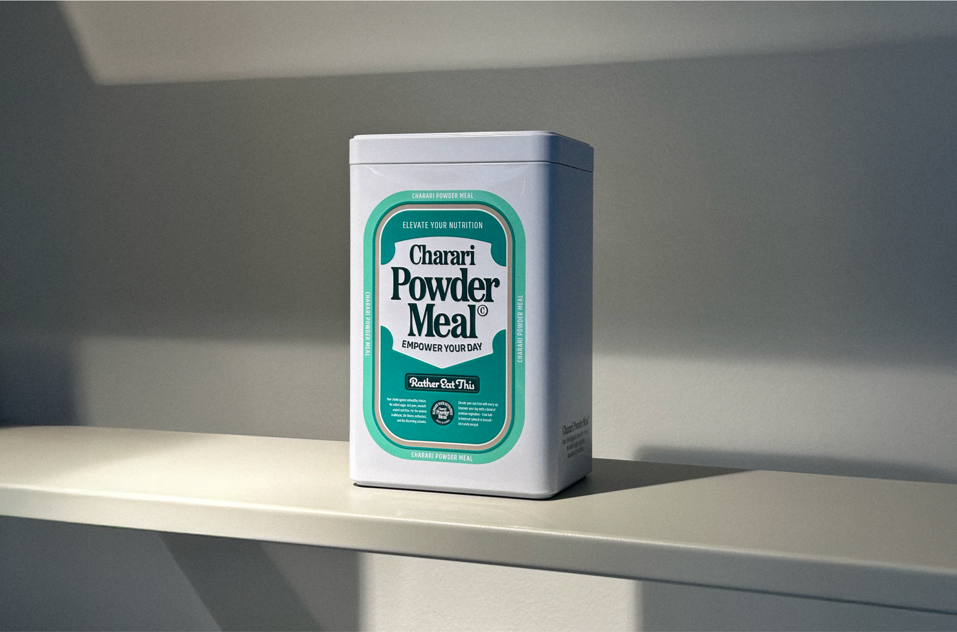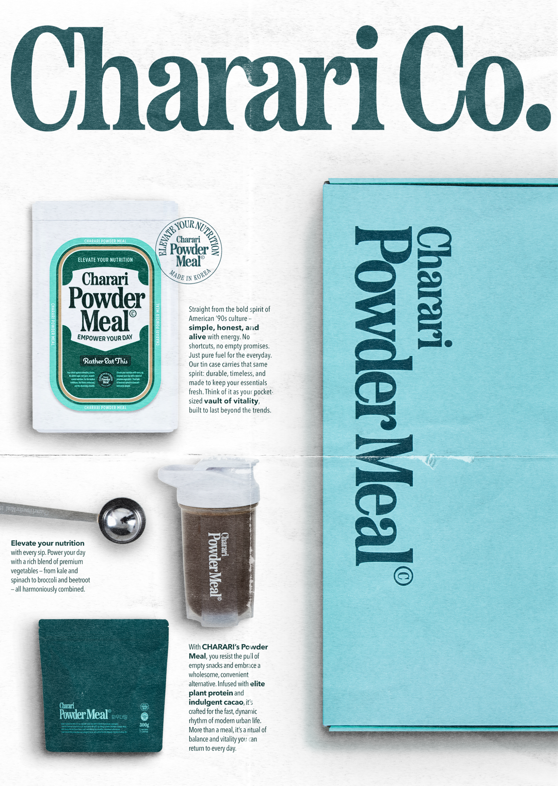 CASE Creative was in charge of the brand identity and packaging design for Charari Powder Meal. The previous design gave off a somewhat masculine and protein-supplement-like impression, which called for a clear repositioning toward a meal replacement product that targets both men and women. However, since the “neutral and healthy” visual direction is already common in the market, we aimed to maintain that tone while establishing a distinctive visual strategy. We drew inspiration from classic American cereal and supplement packaging, reimagining the product as an everyday, aesthetically pleasing object. Our goal was to create a design that would feel at home on a kitchen table—not just as a functional item, but as part of the interior. As a subscription-based premium product, Charari also required careful attention to the unboxing experience and long-term storage. We therefore elevated the quality of both the welcome kit and tin case, ensuring they deliver on both function and form in the user’s daily environment.