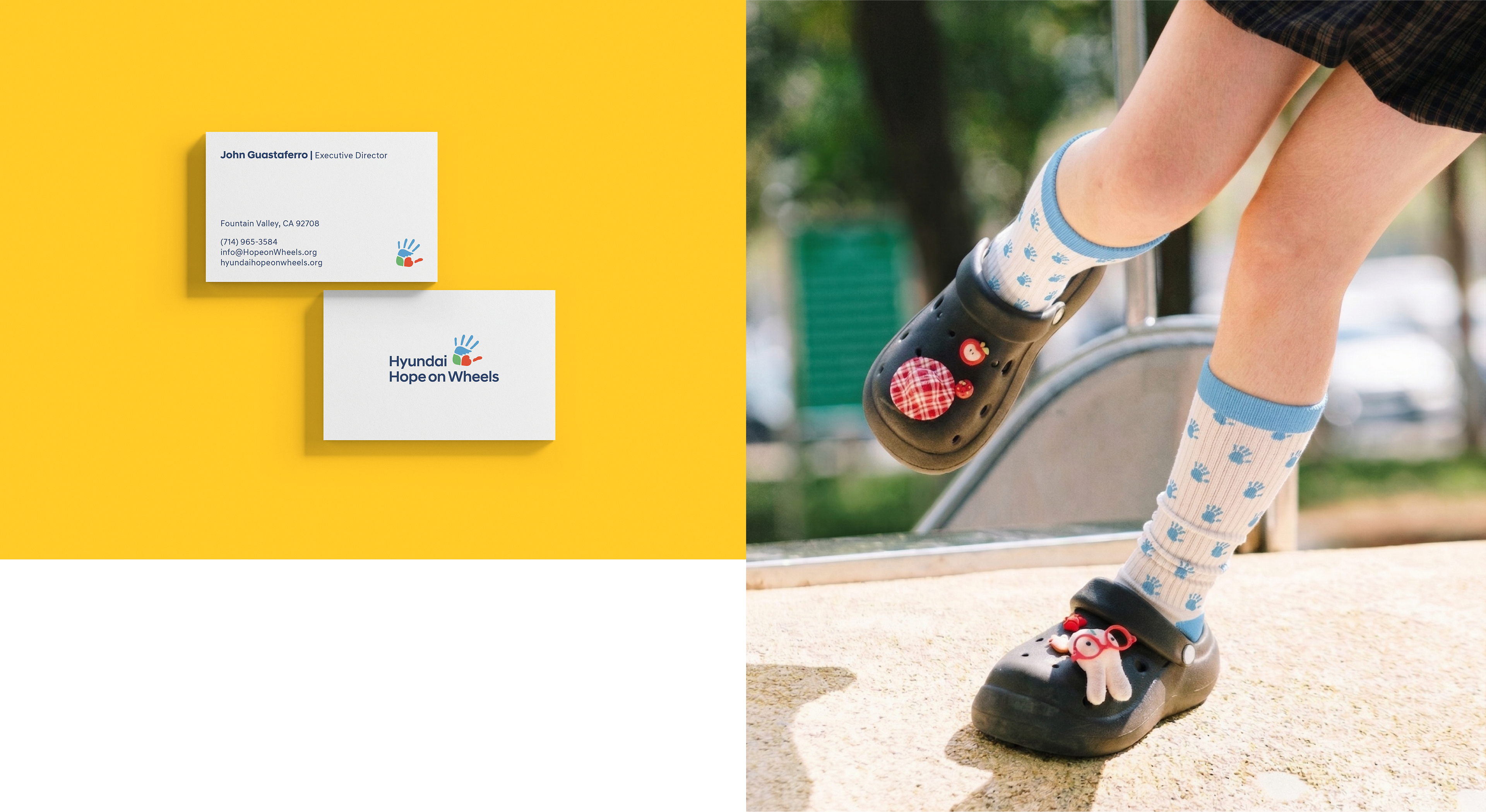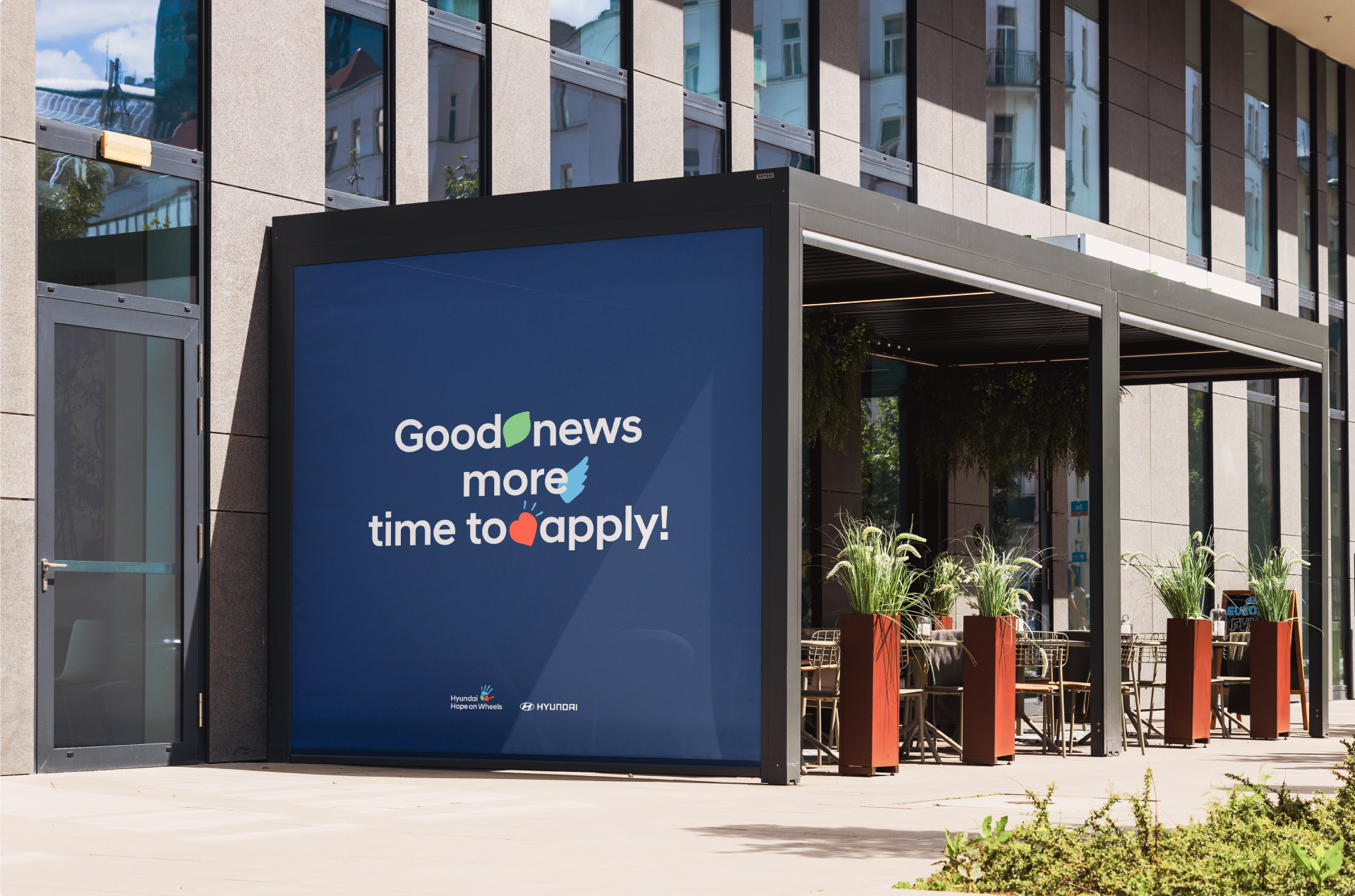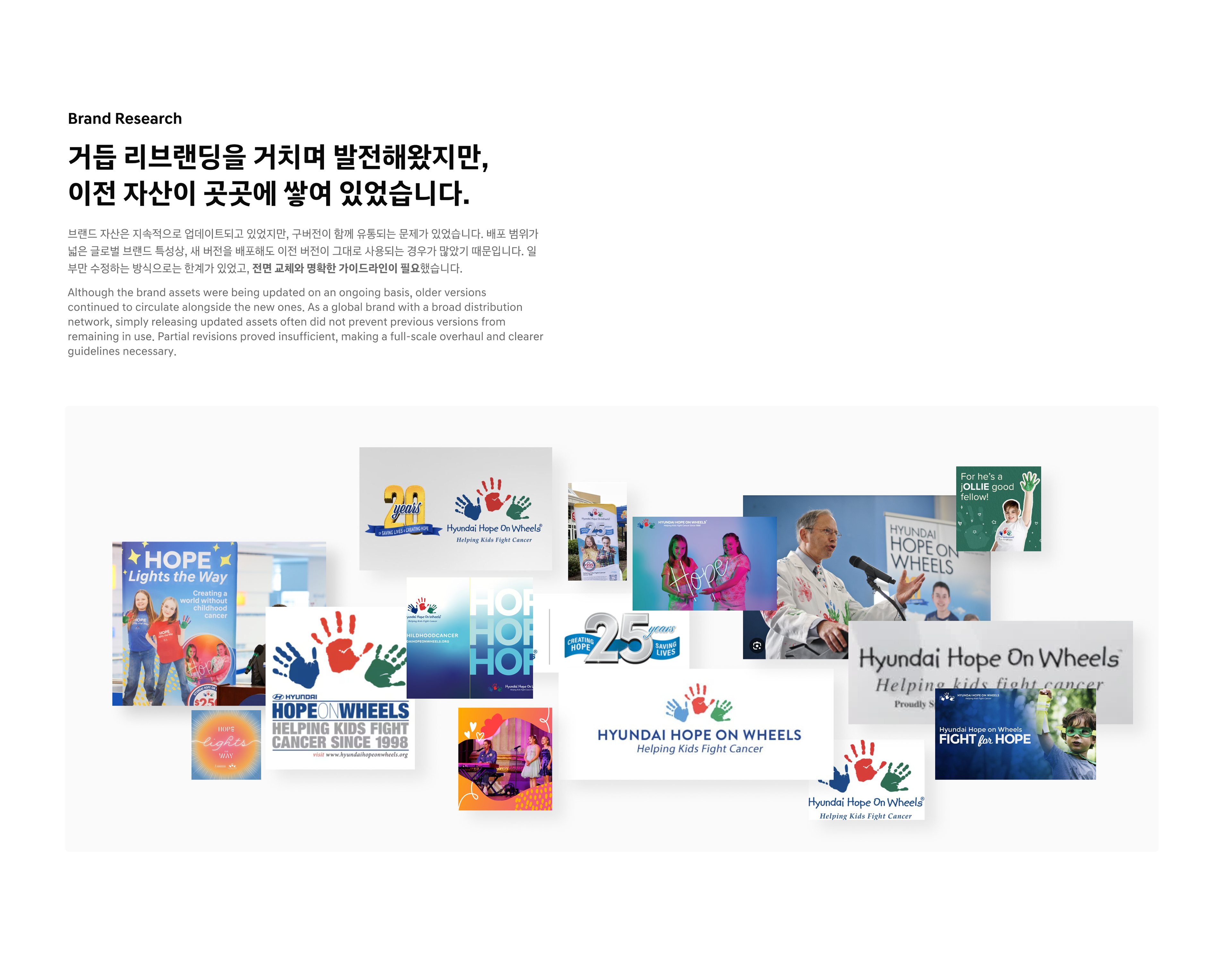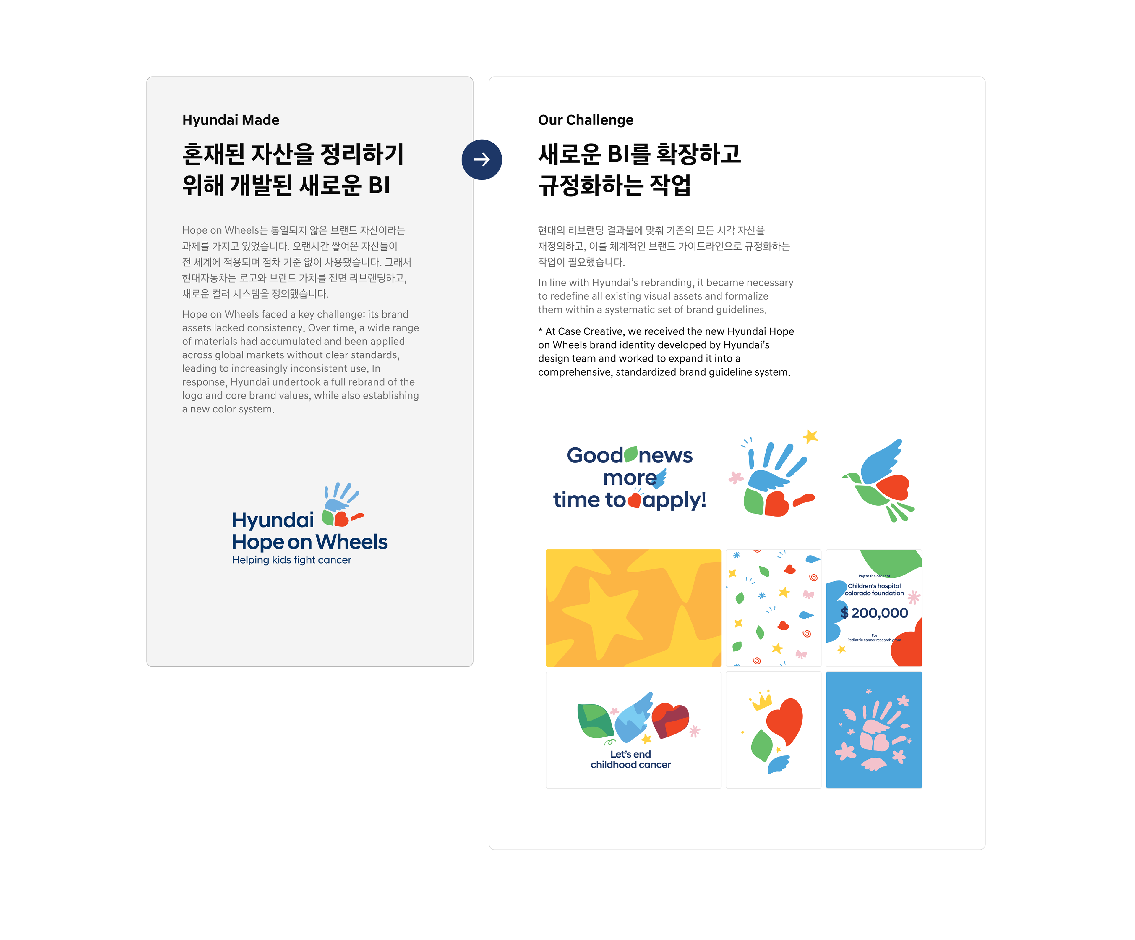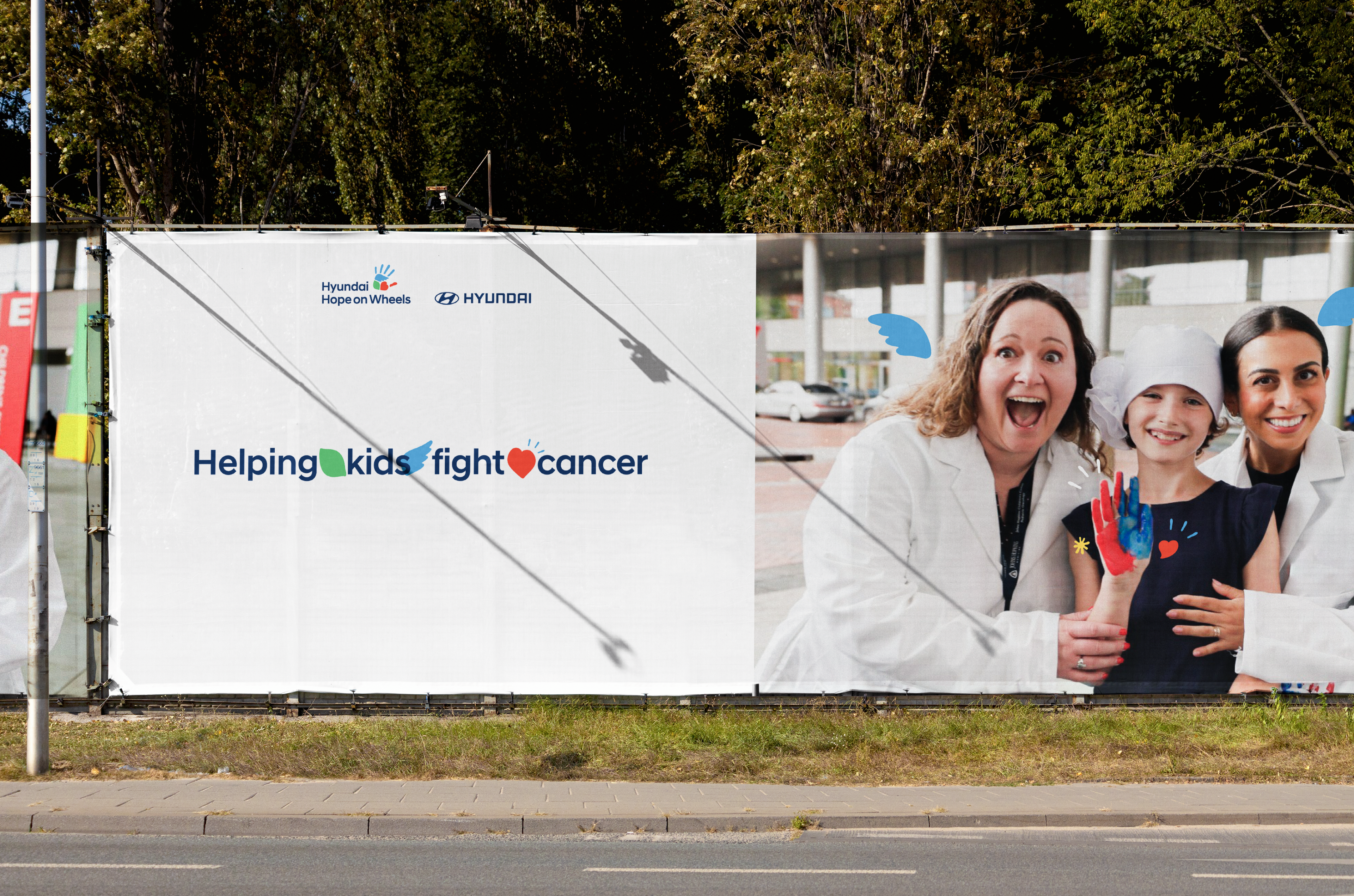 As Hyundai Motor Company’s Brand Experience Team prepared for the global expansion of Hope on Wheels, they developed a new BI and concept that strengthened the brand philosophy by integrating three key elements into the existing handprint symbol: wings (Hope), a heart (Love), and a leaf (Recovery).